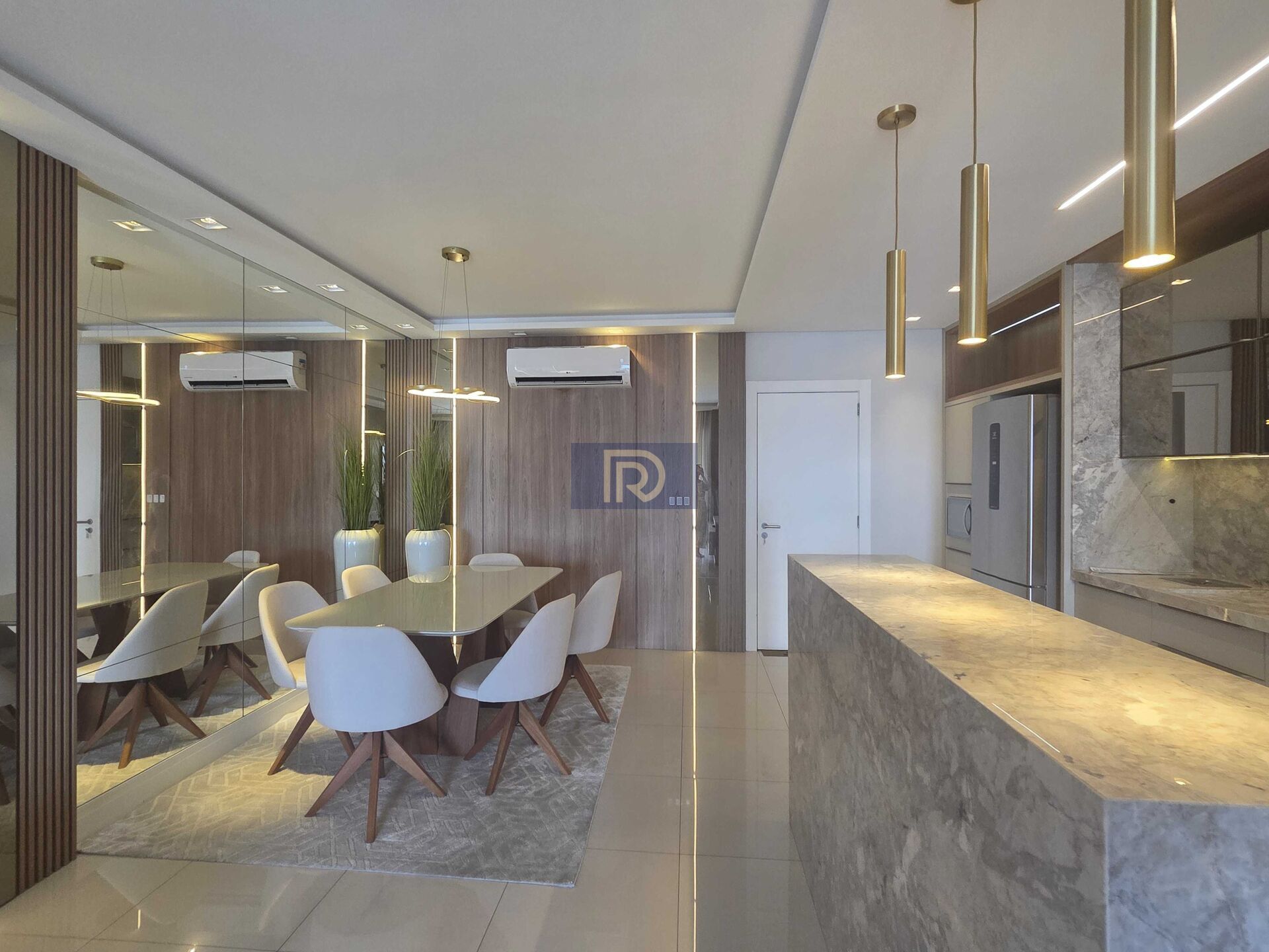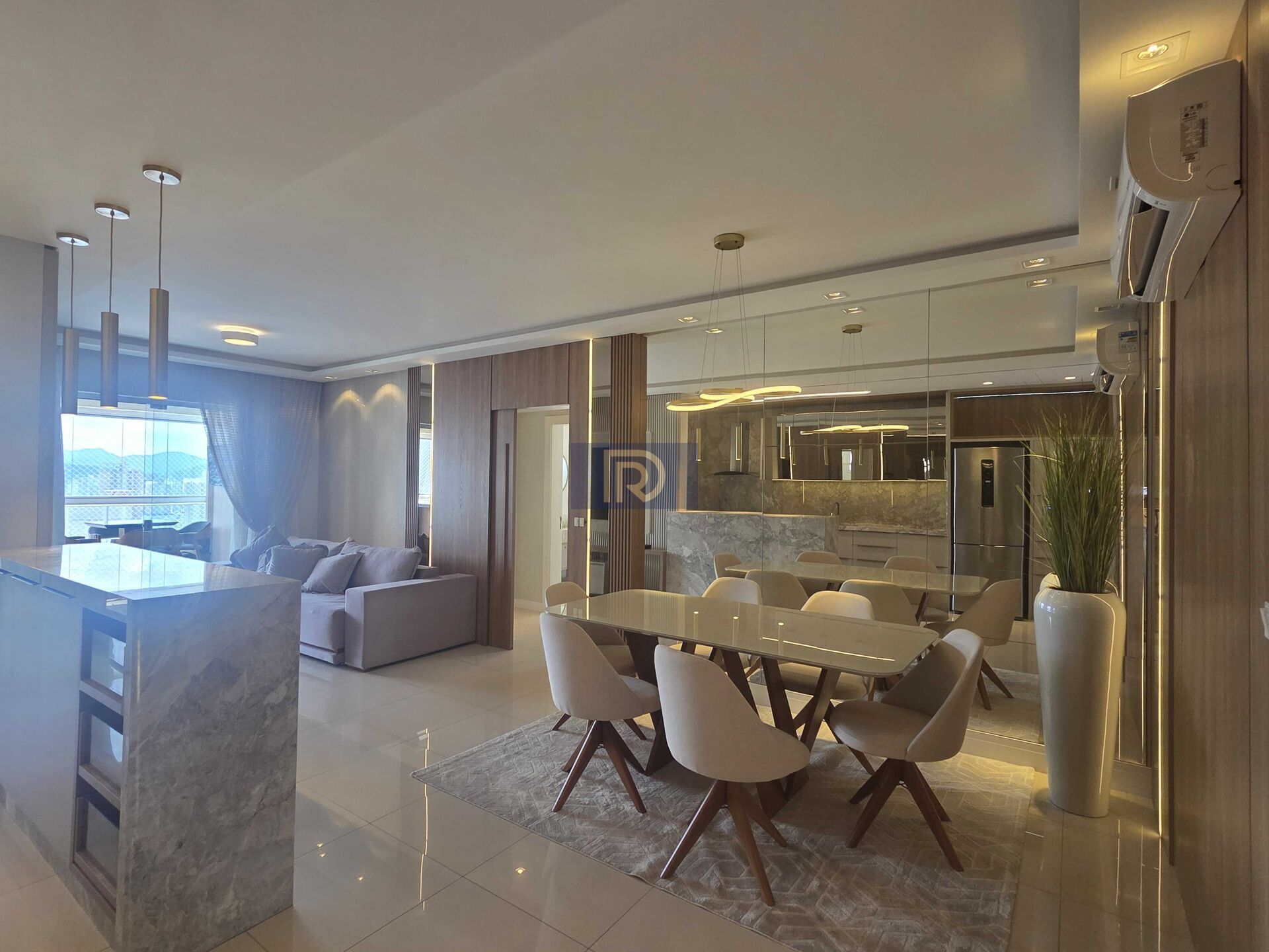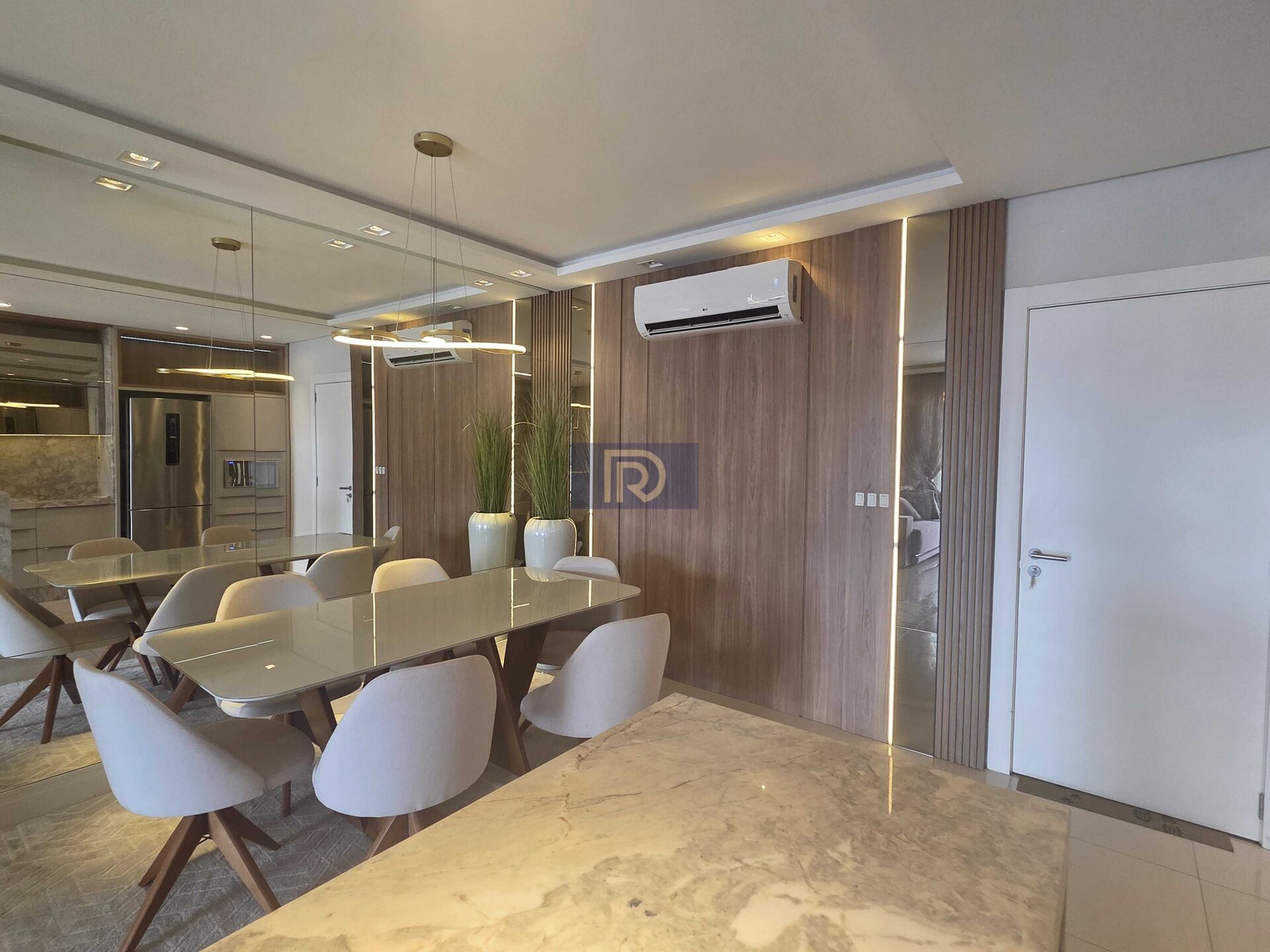 A área social impressiona com uma elegante sala para dois ambientes, onde o design e o conforto se encontram em perfeita harmonia — um espaço ideal para receber com requinte e viver momentos memoráveis.