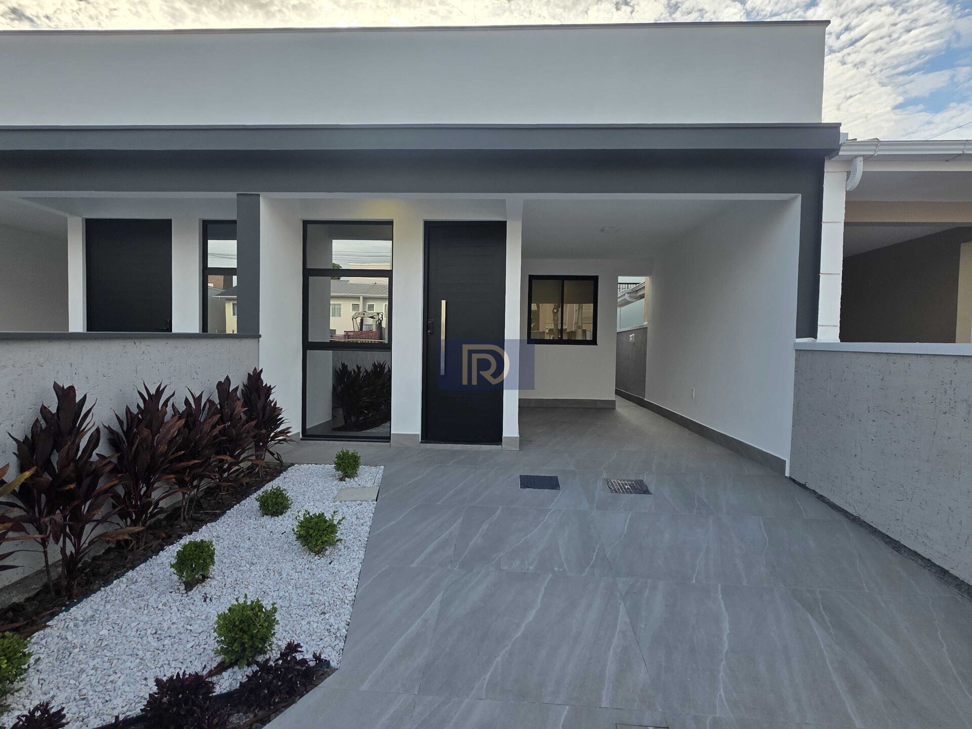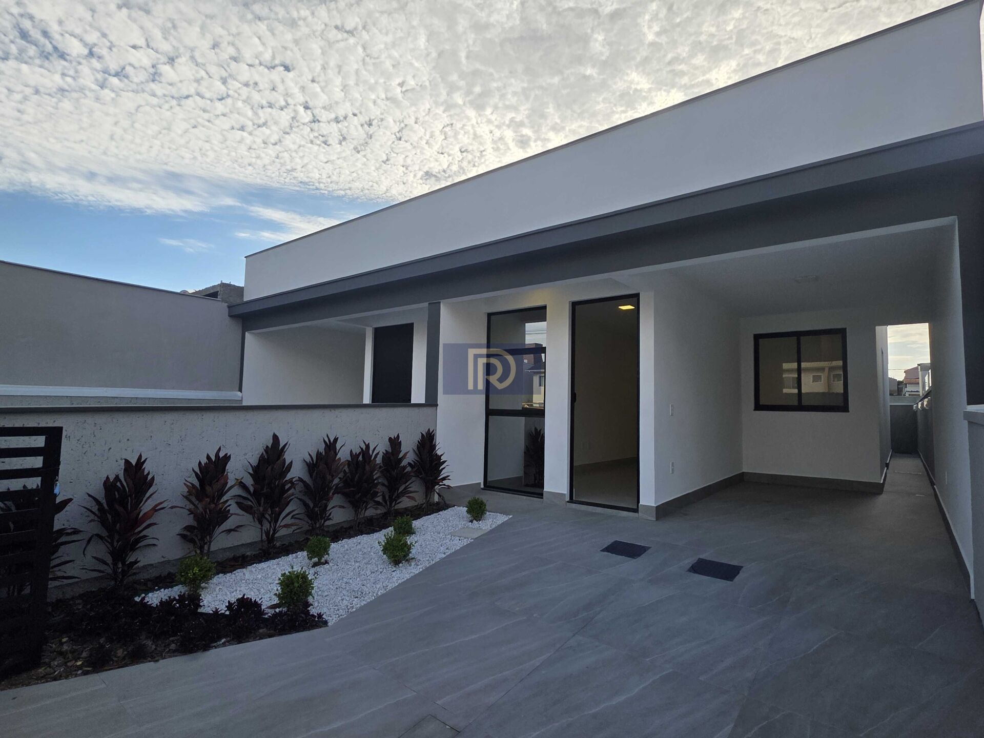 Pátio na frente, com paisagismos/jardinagem;